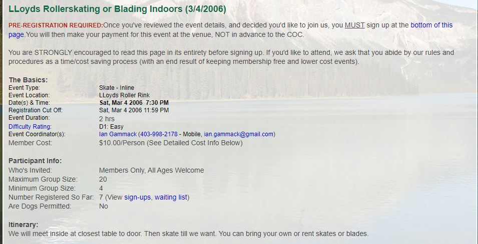 Club Events 2006 : 2006-03-04 : COC - LLoyds Rollerskating or Blading Indoors