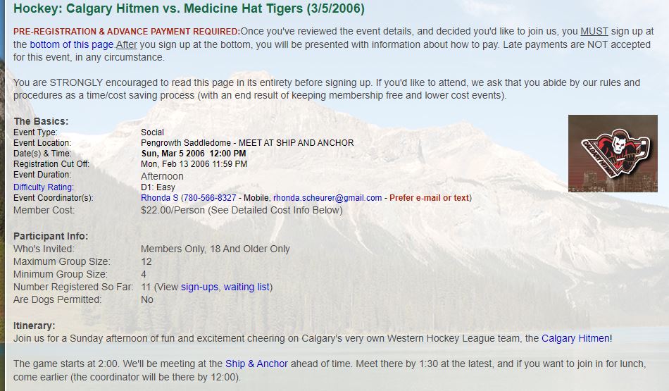 Club Events 2006 : 2006-03-05 : COC - Hockey: Calgary Hitmen vs. Medicine Hat Tigers