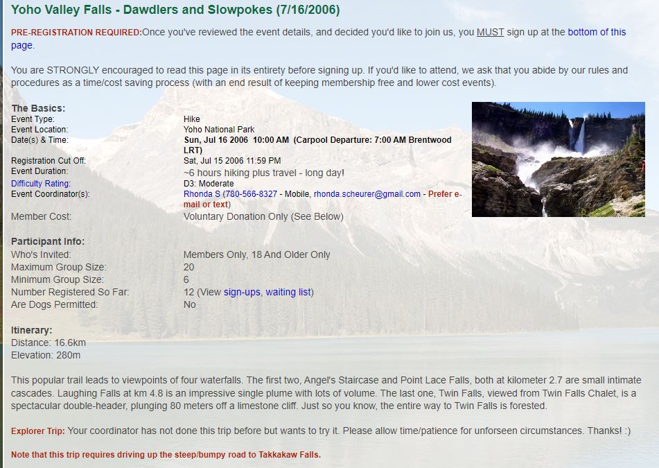 Club Events 2006 : 2006-07-16 : COC - Yoho Valley Falls - Dawdlers and Slowpokes