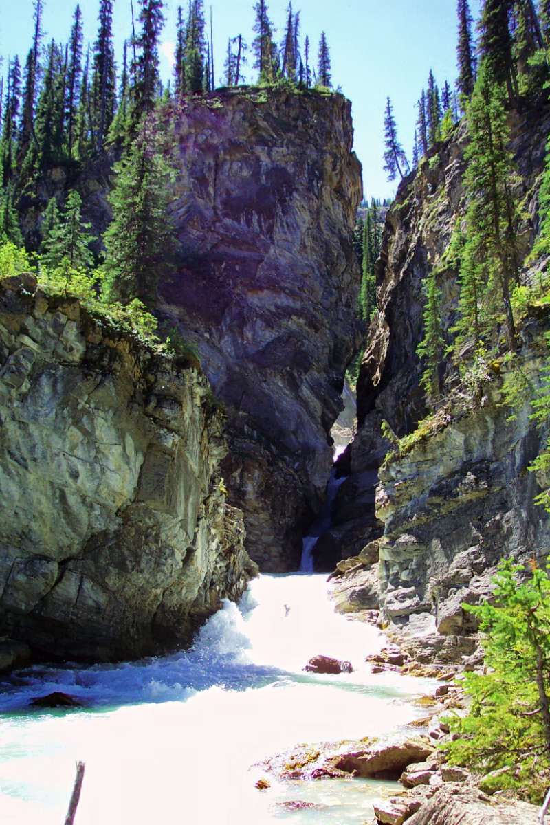 This hike is dawdler heaven. It is long, with only two sections of elevation gain, but umpteen waterfalls along the way. We parked at Takkakaw Falls, and although it wasn't part of our official itinerary, we noodled on over and had an eyefull of it in all its glory. True to its word, the Yoho Valley trail did not disappoint for waterfalls. Soon after we departed, we came across the side trip for Angel's Staircase, which, once I clued in to the staircase high up on the mountain was really cool. A few minutes later, a side trip to Point Lace Falls, which did actually look like lace. Noodling our way up the trail, we soon came to an unnamed "bonus" small waterfall. A detour in to Duchesnay Lake, which wasn't that impressive itself, but was interesting with a bunch of tadpoles and caddis fly larvae floating around in the water, and dead trees standing from where the water had been higher, but then receded. Heading merrily on our way, we soon came to Laughing Falls, which was definitely one of the favorites of the day with a great canyon, and lots of rainbows in the air. We stopped there for a snack. The final hike up to Twin Falls was somewhat longer and had the most elevation gain, but the Twin Falls were astounding - many of us even liked it better than Takkakaw Falls. Along the way, we tried to figure out what the tall, distinctive peak across the valley was. It was unnamed, and although I think it is probably part of Mount Niles, we decided it was impressive enough to warrant its own name and we duly dubbed it "COC Mountain". This hike really was a dawdle... from the time we set out to the time we departed Twin Falls was FIVE HOURS. It only took us two hours to return, though - dawdle time was over. It was great fun having Steven from Atlanta and Jacqueline from Toronto join us, too - we love visitors! Two great big thumbs up for this one - I would recommend it to anyone! -- Rhonda |