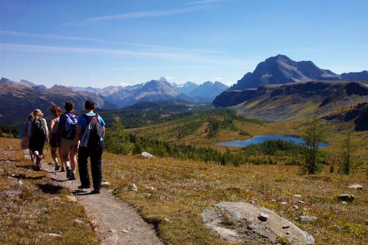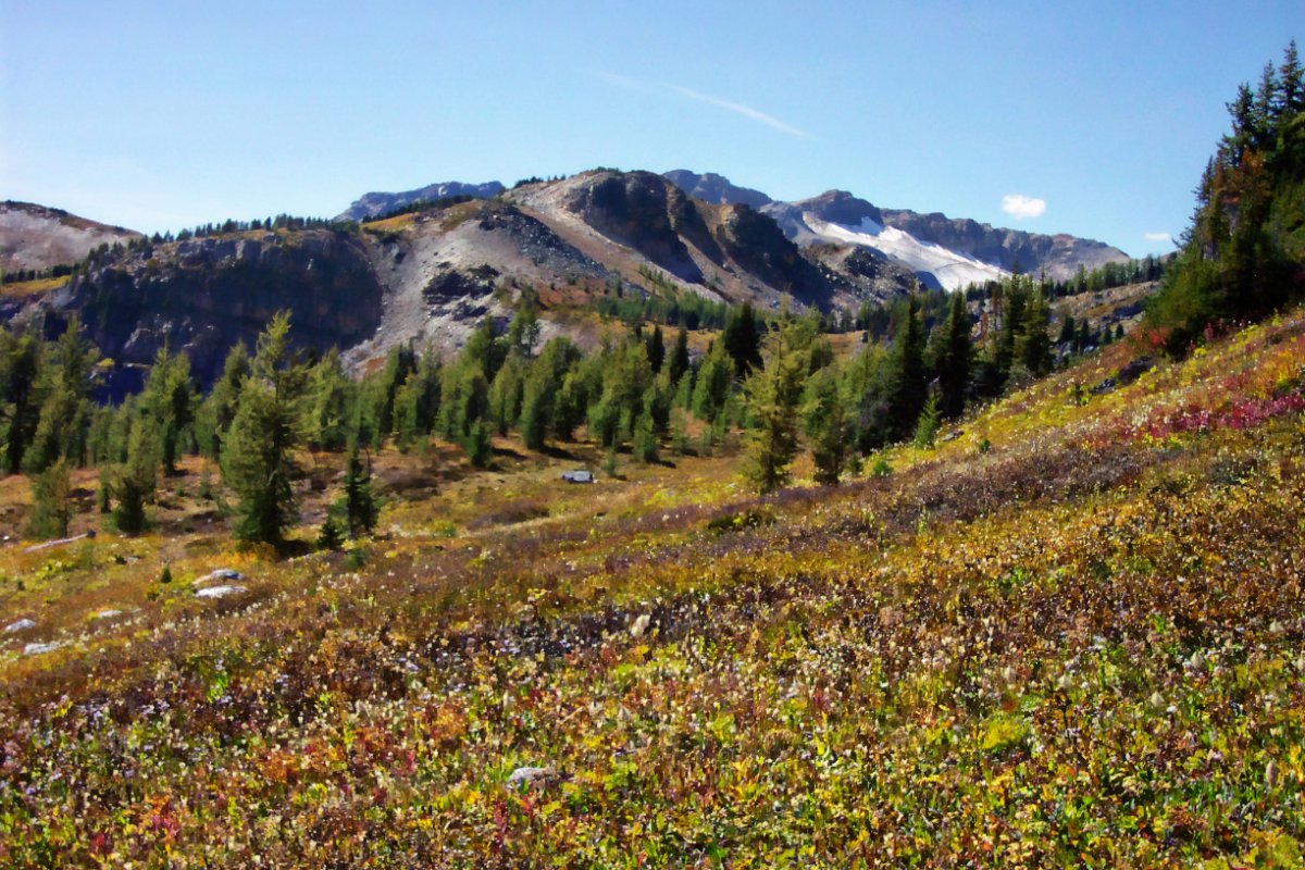 There are three reasons why this is my favorite hike - scenery, scenery, and of course, scenery. And today did not disappoint - it was a beautiful sunny day, warm but not scorching, with amazing blue skies. Ozzie Ann looked tres Canadian in her Roots t-shirt and fanny pack. Harley the Healy Bug came for a visit during lunch - he was a real beaut - check out his photo! As usual, my best pal, Bridget was getting on my tits all day. When we got to the pass, the moderate group was sitting up on the ridge like a shag on a rock. Have a great day, and keep your pecker up! -- Rhonda |