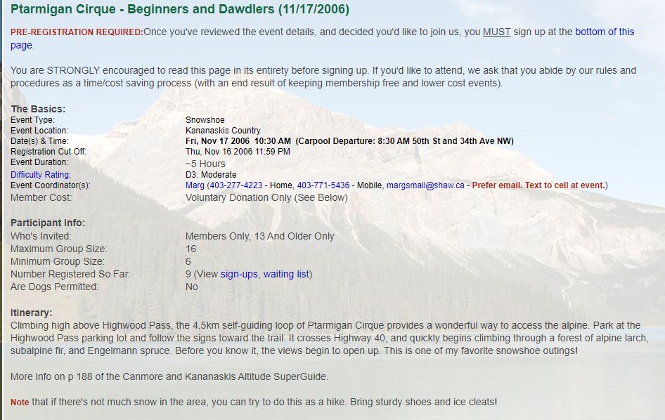 Club Events 2006 : 2006-11-17 : COC - Ptarmigan Cirque - Beginners and Dawdlers