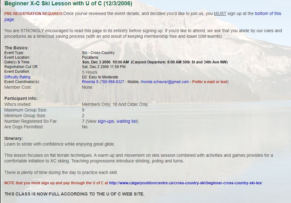 Club Events 2006 : 2006-12-03 : COC - Beginner X-C Ski Lesson with U of C