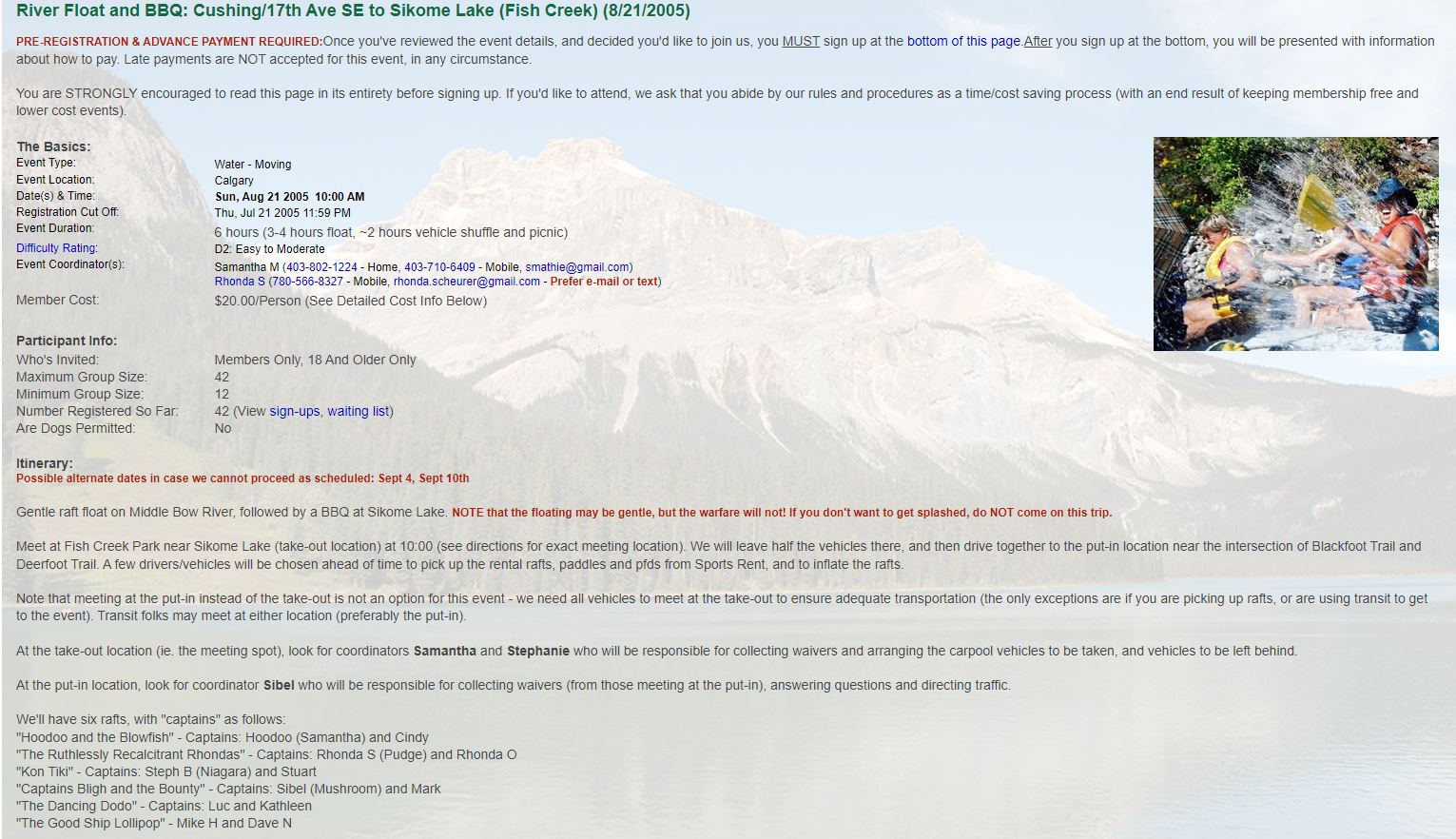 | 2005-08-21 : COC - River Float and BBQ: Cushing/17th Ave SE to Sikome Lake (Fish Creek) |