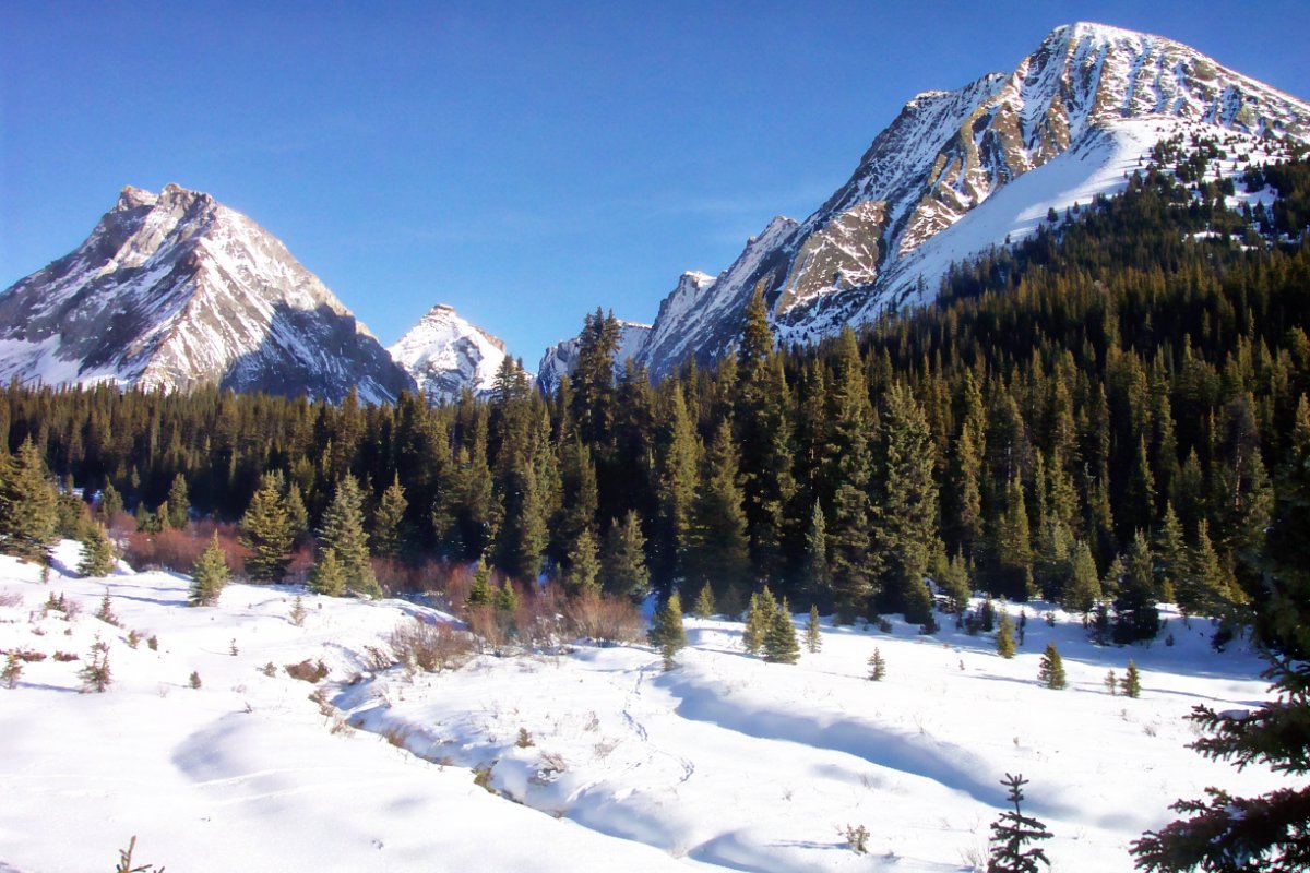 This was a fantastic beginner event! We had 31 people out today, many for their first time ever snow shoeing. We set off around the Hogarth Lakes trail, and before we'd even gone one kilometer, came to a large open stream. A few people tried to cross, and many ended up with wet feet (and some with wet legs). One of our group had heard from the info center that the other side of the loop was even worse for water hazards, meaning we'd have to return this same way, and so we decided instead to turn around, and venture a ways up the Burstall Pass trail instead. When we got back to the intersection, some opted to stay back and practice snow shoe skills with the pristine meadow and great little hill, while others started up Burstall Pass. The "slow group" turned into the "stop and have lunch and turn back early group", and upon their return, they had a play on the great little hill, followed shortly by the "went all the way to the first Burstall Lake group" who also played on the great little hill. When it was time to go, we kept the big vehicles back to make sure the little guys could get out of the snowy parking lot - we were all ok, but we did help a family get their car out of the lot (they were lucky we were loitering around to do car pushing duty!). Several of us ended the day at Kilkenny. Before the day had even started, we lost a car, and I hope that Julie, An and Karen made it back to town ok (Julie had injured herself on the way up, although reports were conflicting about exactly what happened... it happened when she jumped out of the car to try to help Ken, who'd gone in the ditch on the Smith Dorrien). -- Rhonda |
