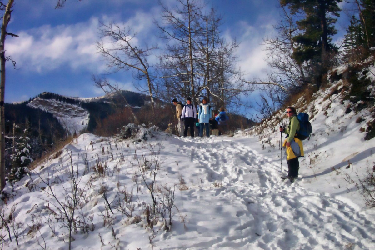 Well, I didn't get to finish the hike today - I had to turn around with a hiker with a minor injury, but Debbie took over the group and it sounds like they thoroughly enjoyed themselves. Some comments: It's windy up there! But the sun is great and we can see very clearly the snow mountains far away. -- Sunry We made it and didn't get lost thanks to Debbie. It was very windy at the ridge, with a fantastic view. We saw a small herd of dear running through the snow at the top, you could pretend that they were reindeer and Santa would be next. I think that Julie and Sunry enjoyed their experience despite wet socks ( Debbie lent her a dry pair). Snow hiking is much more tiring than summer hiking. -- Ann |