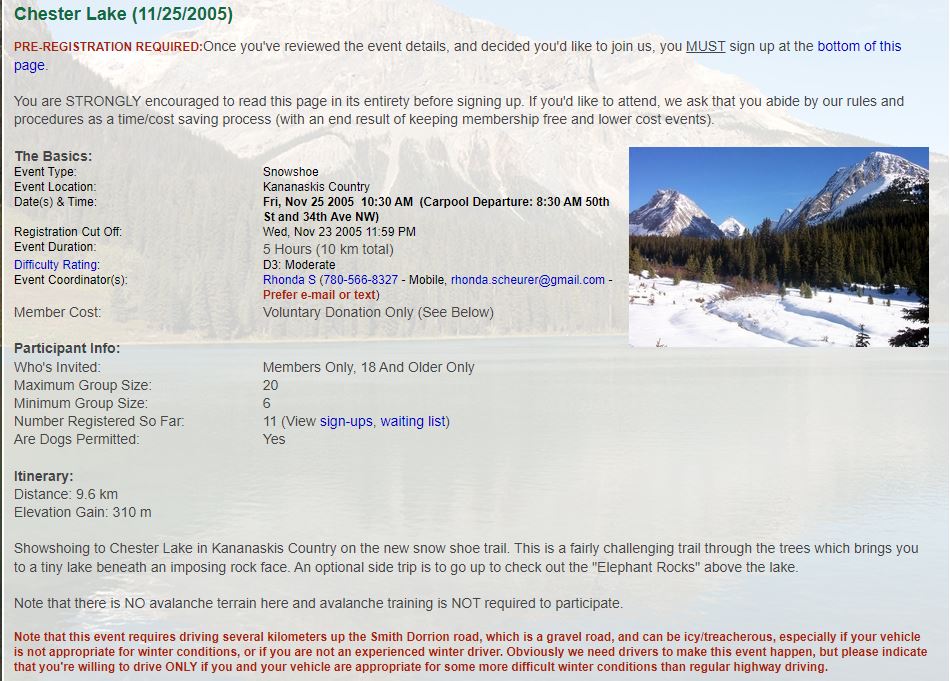 | 2005-11-13 : COC - Hogarth Lakes - Beginner Snow Shoe |