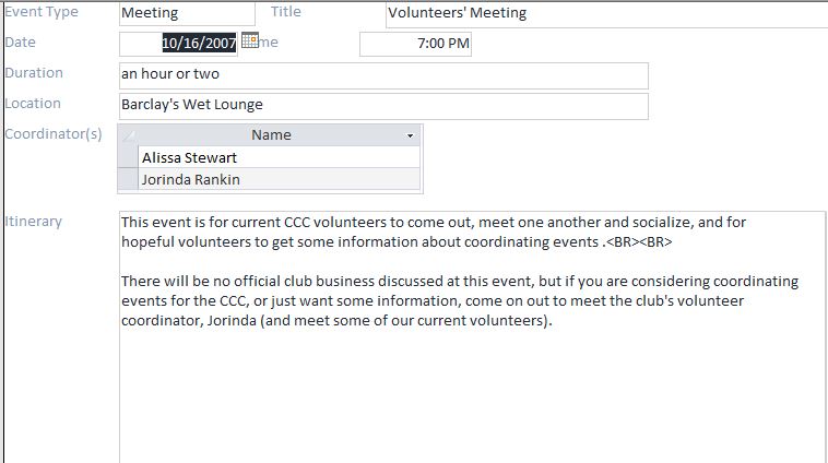 This event is for current CCC volunteers to come out, meet one another and socialize, and for hopeful volunteers to get some information about coordinating events . There will be no official club business discussed at this event, but if you are considering coordinating events for the CCC, or just want some information, come on out to meet the club's volunteer coordinator, Jorinda (and meet some of our current volunteers). |