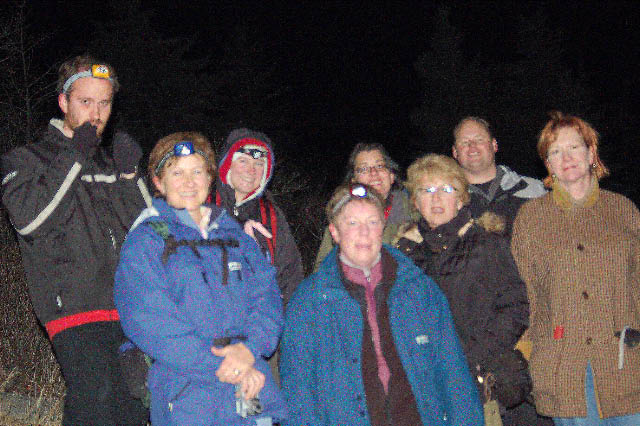We had a nice little group today, great weather conditions, and a great little hike. The trail was a bit slippery so some of us wished we had our ice cleats (some of the smarter ones had their ice cleats). There is a newly developed trail to Rummel which we discovered after aborting our mission to cross the treacherously slippery narrow ledge. To use the new trail, go left at the fork where there's a bridge on the left and a "do not enter - avalance zone" sign on the right. Follow the trail over the bridge and keep going. If you come to another fork - stay right and follow the yellow trail marker signs on the trees. Very nice. :) It was great the Kjell and Margaret could join us for a hike before moving to Angola. Wow! -- Rhonda |
