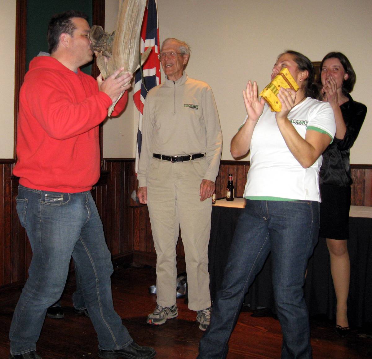 Event Coordinator(s): Jason M Participants: Jason M, Stephanie A, Mel Tan, JennP, Bec B, Rhonda from Calgary, Joel, Samantha M, Jason M, Pierre Rock Paper Scissors Championships 2007 So the Legend goes as follows: One day, a certain volunteer by the name of Jenn M posted in the TOC forum an event that was happening locally, something that would have brought a little chuckle to the rest of the forum dwellers. The link took us to a site advertising the upcoming Rock Paper Scissors World Championships being held in Toronto that year. Rhonda, the beloved creator of the sacred Outdoor Club website and Albertan (don’t hold it against her) was dared to fly to Toronto to cheer Jenn on if she (Jenn) competed in the Championships. Little did Jenn know that Rhonda was going to seriously take her up on the offer, and the rest is history (that you can find Here.). Rhonda and the rest of us had waaaaaaay too much fun at the Championships that we immediately agreed o do again this year, and this time, we would be better organized and ready for the debauchery that masks itself as the RPS Championships! We assembled a Team of players, 3 from Calgary, Maureen, Joel and Rhonda, and 2 from Toronto, Jenn P and Jason. We created T-shirts for team ‘Runs with Scissors’ and also made some for the groupies there to support us! We were a lean mean, fighting machine, decked out in the finest looking T-shirts this side of 49th parallel! We studied our Gambits and mastered our strategies! A quick team huddle and we were set to take on the world! And yes, the World is represented quite well at these tournaments, last year’s champion was a Brit, and this year he was dressup as a British Admiral. Other colourful characters included a Hulk Hogan wannabe, A Giant Rat that said he was really a bunny with a rat tail sticking out of his mouth, various Elvis impersonators, Gladiators, Knights, Bukkake Girls, and the venerable Captain Morgan himself! |
