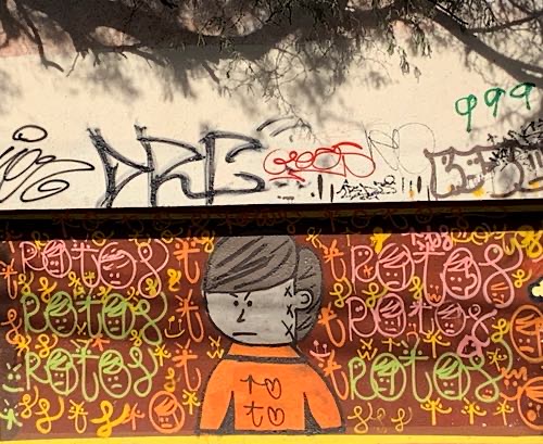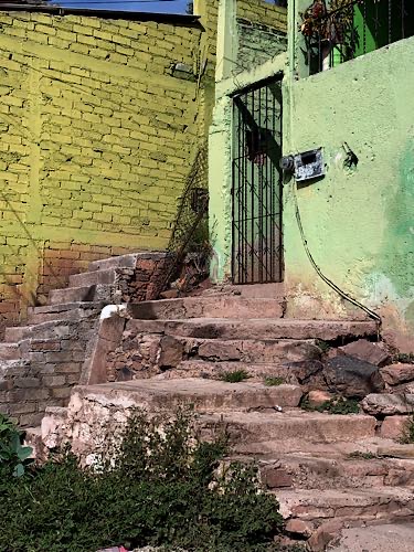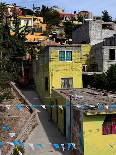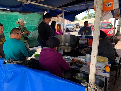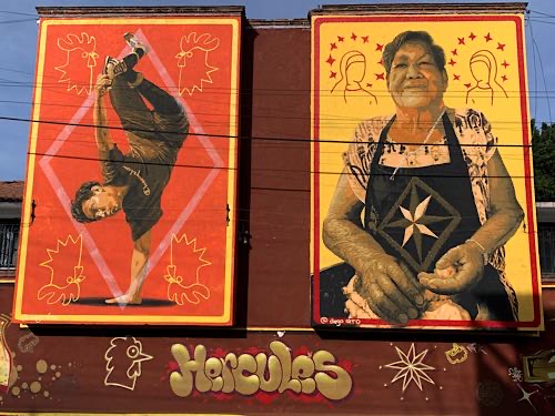 | This morning we walked up to the start of Los Arcos and then discovered that we were right beside the Hercules neighborhood, which is up for consideration as. Barrio Magico. So we took a wander through Hercules as well. When we got there the sole came off of one of my Keens. We bought some crazy glue (Kola Loca) at the nearest OXXO, and after a quick repair, off we went again. At the end of our walk we had gorditas from the food truck down the road. |