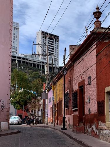 After Bici Burro we went for a scenic neighborhood walk. We climbed up to the Mirador viewpoint but the view wasn’t very good because of a smoky haze. We assume it was from last night’s fireworks. We then walked to the El Chorro park which we visited with Elissa in 2017. Then, we walked randomly through neighborhoods El Chorro (including Parque Juárez), and Guadiana, and then popped back into neighborhood San Antonio on our return. I was getting a little noshy so we looked for a place for a light lunch. We looked at a few places, but decided to go back to El Correo, where we had breakfast on our first day. |