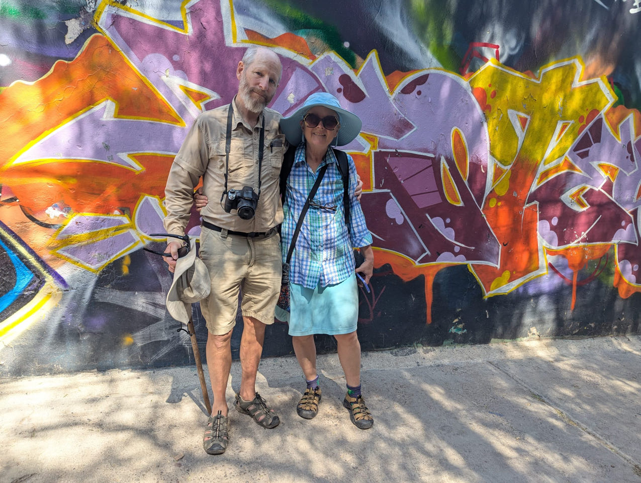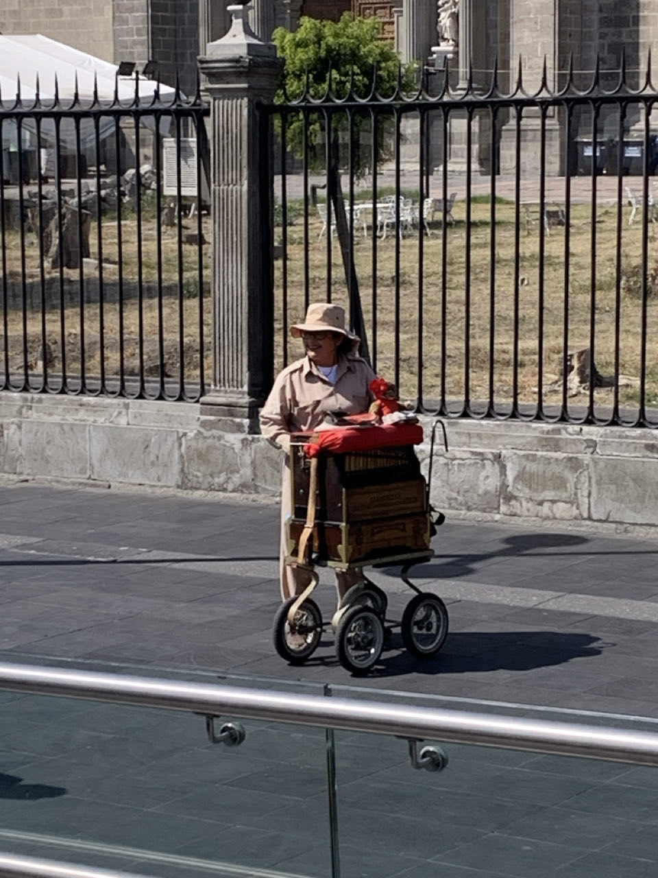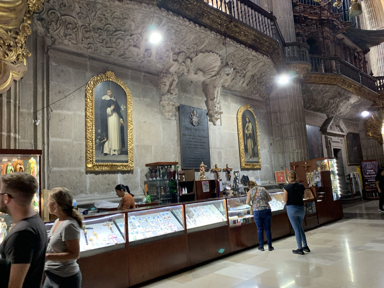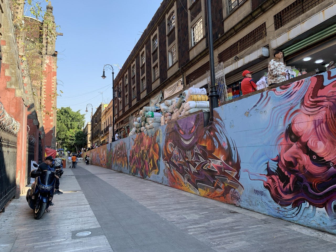 | After a bit of a recharge, we went back out walking. We visited Catedral Metropolitana de la Ciudad de México, which is enormous, and even has a gift shop right in the cathedral. We then walked down Calle Emiliano Zapata, which I found really interesting - it had raised walkways on either side and (finally) some street art. We walked as far as La Santísima before turning around and having dinner and a beer on our AirBnB terrace. |