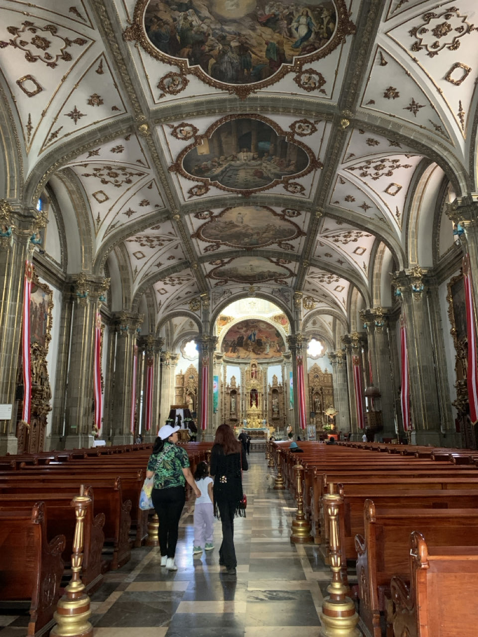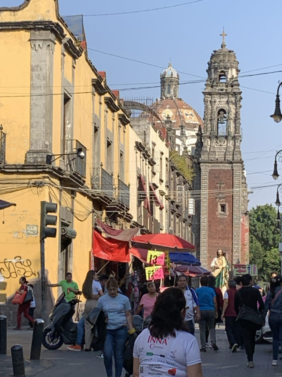 After visiting Chinatown, we went out for some more walking. We walked around the northeast end of Centro Historico, which was crazy busy, and then took the metro wayyyyy down to the Coyoacán neighborhood where the Frida Kahlo museum is. Unfortunately the museum was sold out of tickets for today but Coyoacán was really interesting anyway. We had a look at Iglesia de San Juan Bautista, which was very nice.