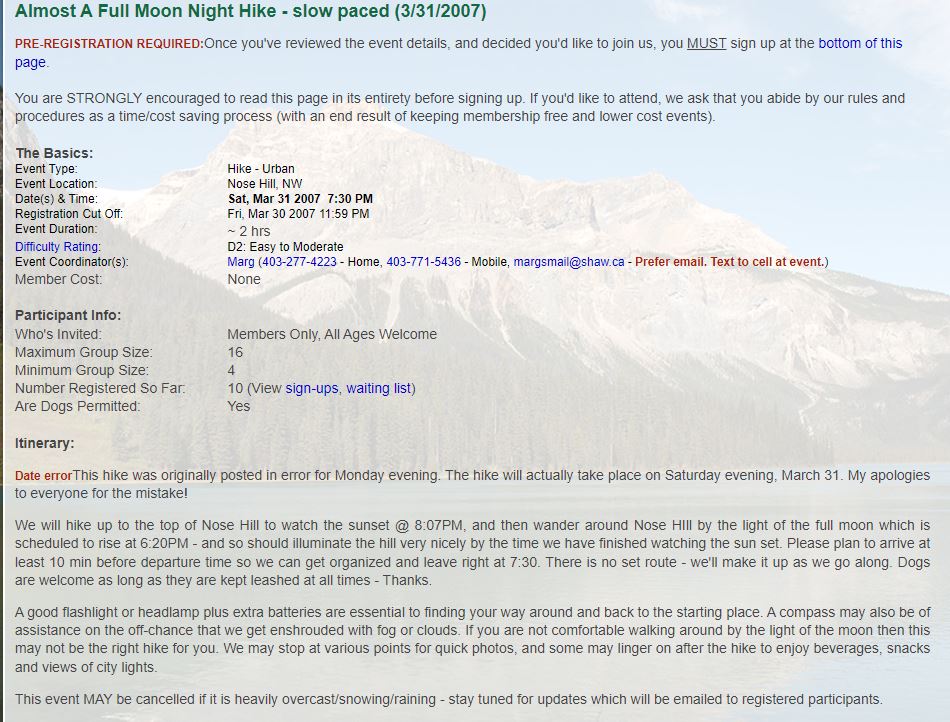 Club Events 2007 : 2007-03-31 : COC - Almost A Full Moon Night Hike - slow paced