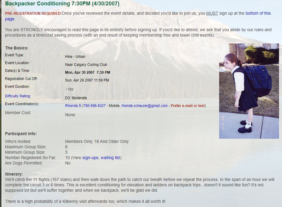 Club Events 2007 : 2007-04-30 : COC - Backpacker Conditioning