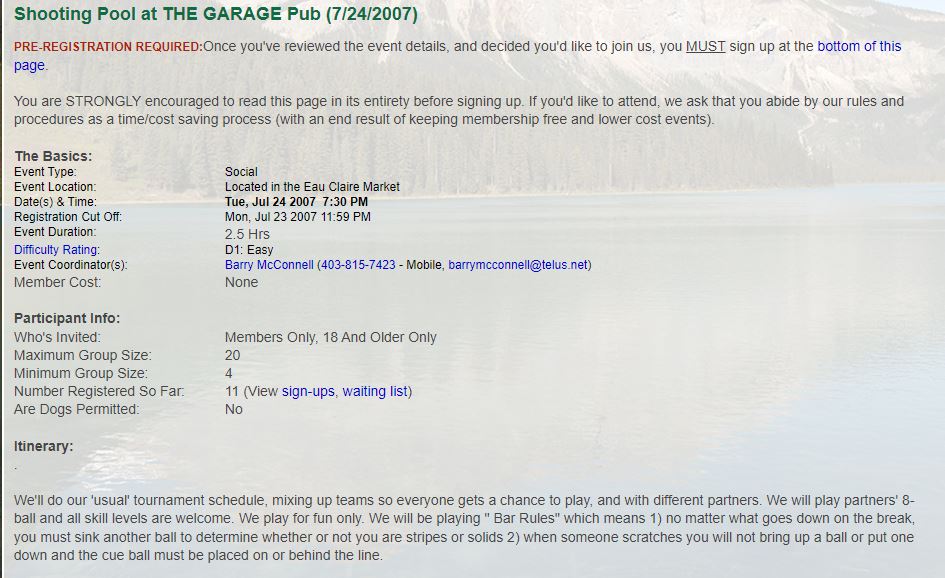 Club Events 2007 : 2007-07-24 : COC - Shooting Pool at THE GARAGE Pub