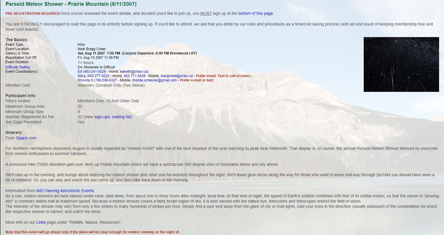 Club Events 2007 : 2007-08-11 : COC - Perseid Meteor Shower - Prairie Mountain