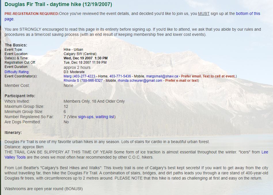 Club Events 2007 : 2007-12-19 : COC - Douglas Fir Trail - daytime hike