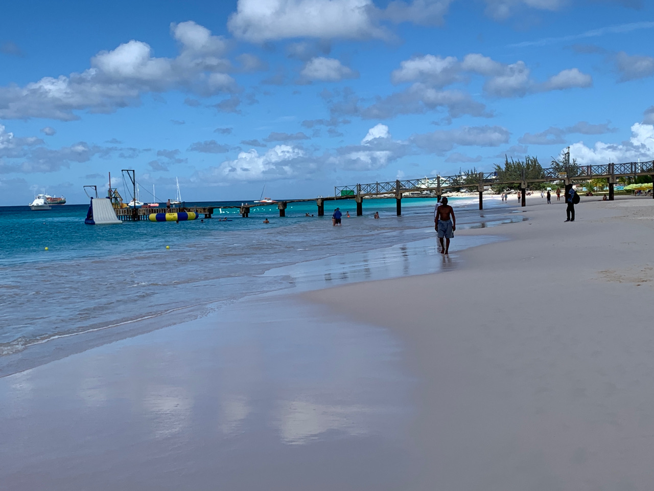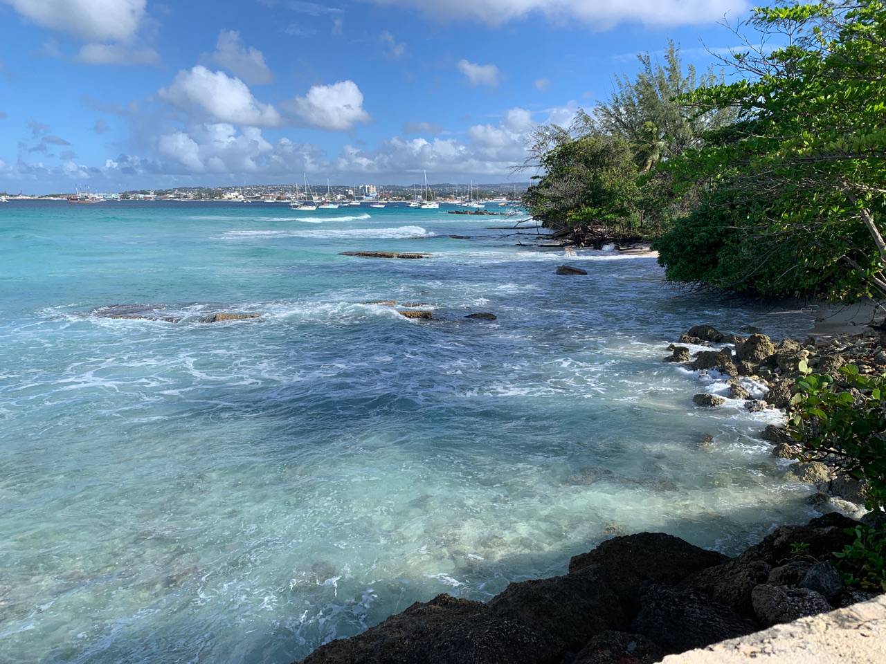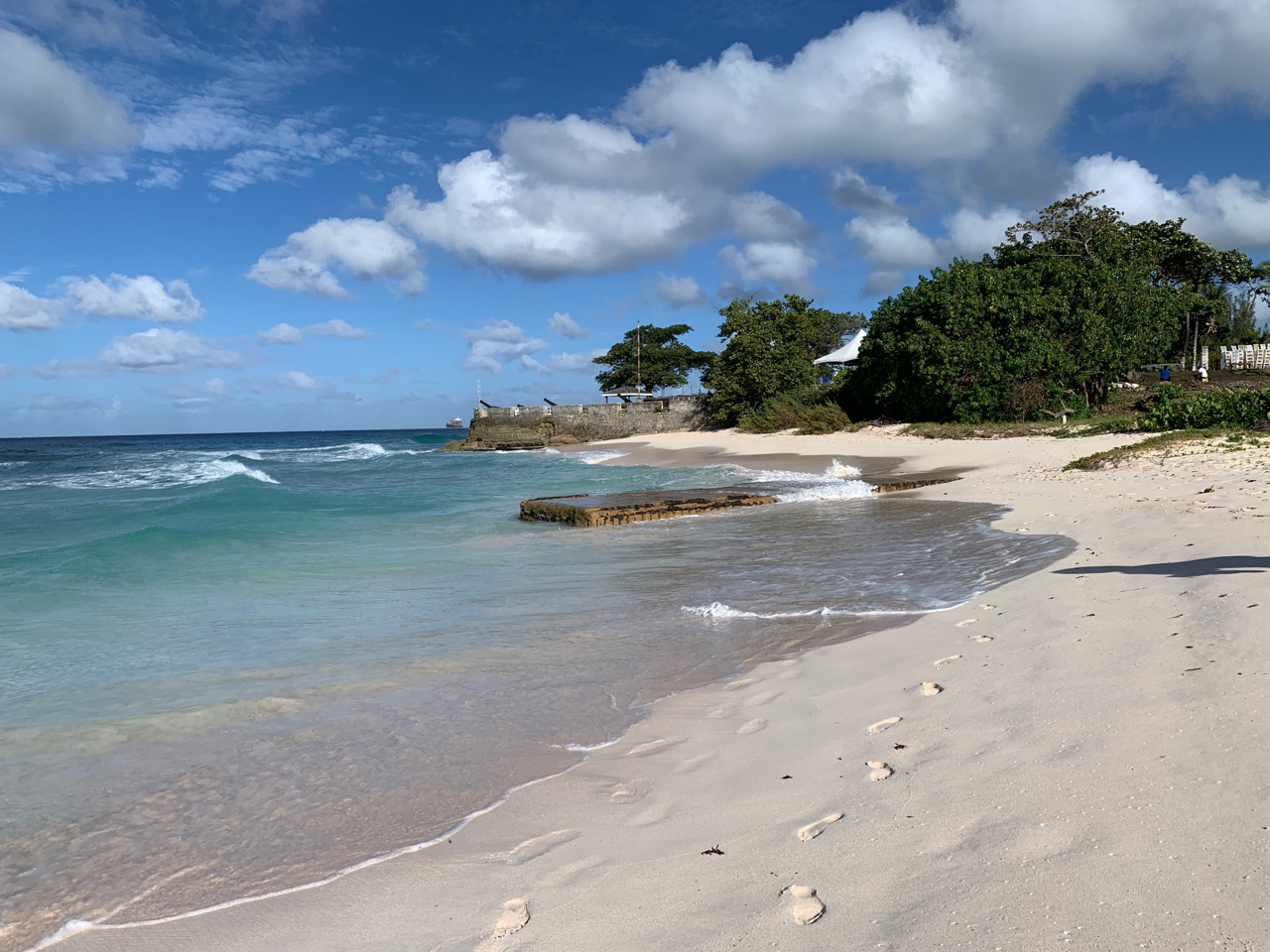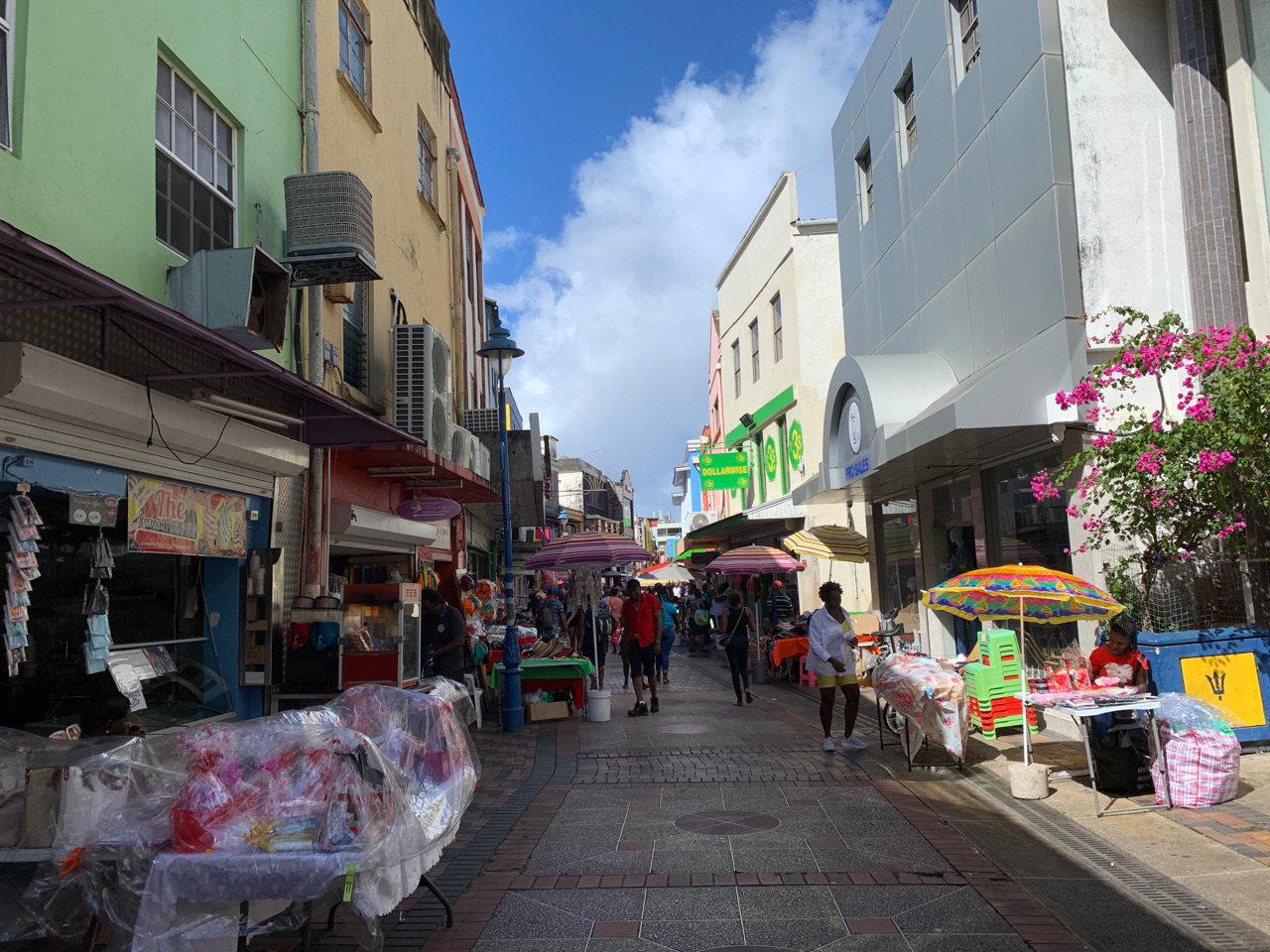 This morning we walked into Bridgetown from our Airbnb, which is in Hastings (a suburb). We were able to walk almost all the way on beach until we reached a small section owned by private resorts (boo). We were looking for a store to buy a Flow (or Digicel) SIM card but ended up finding one at a random store instead. Brent had a nice chat with the clerk, encouraging her to travel.