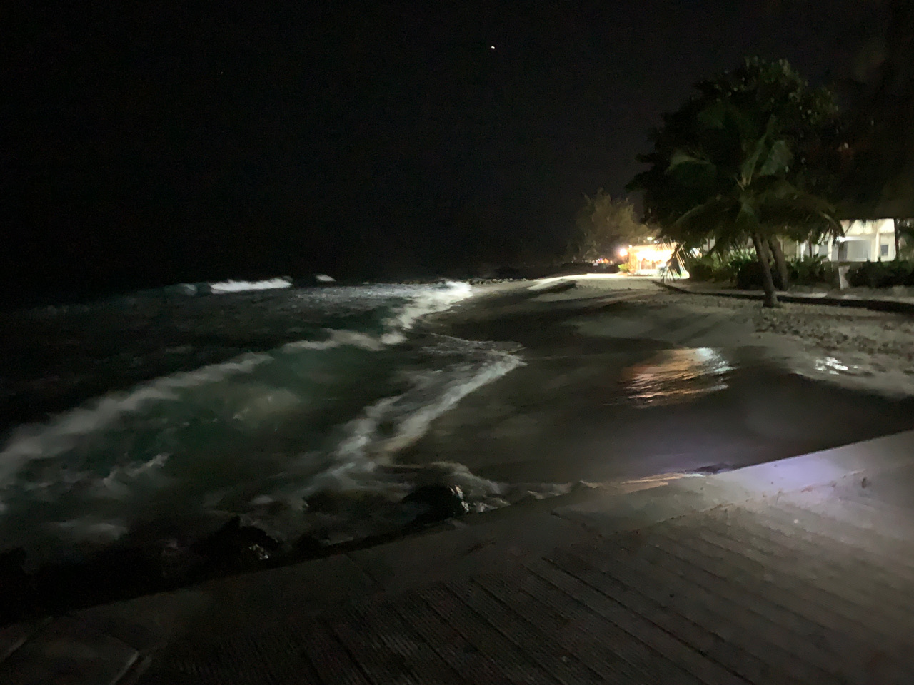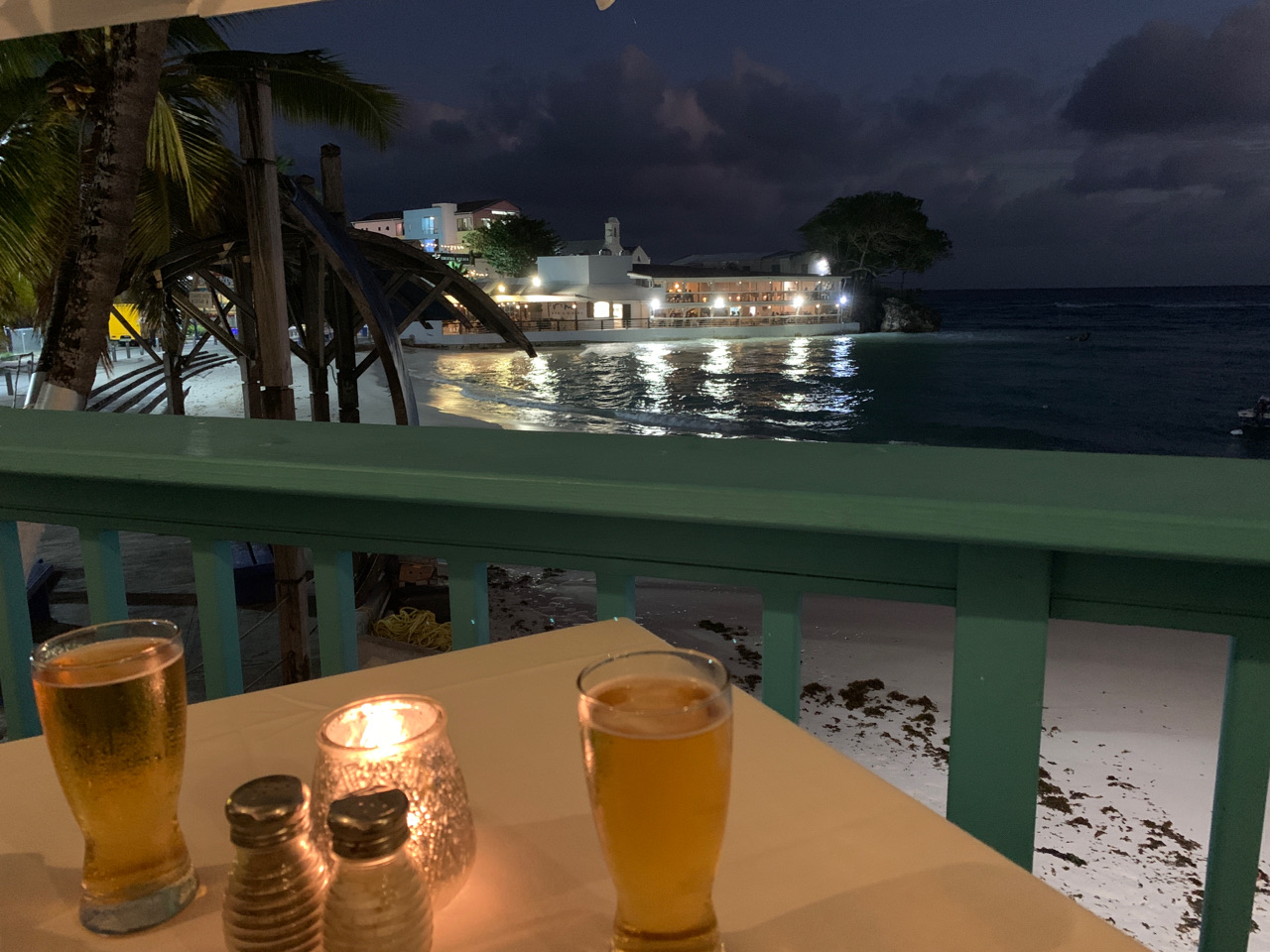 | This evening we walked down to St Lawrence Gap for dinner (at Castaway’s), including the Richard Haynes Boardwalk. It was very nice, and the meal was excellent, but very expensive. Barbados is more expensive than it used to be. |