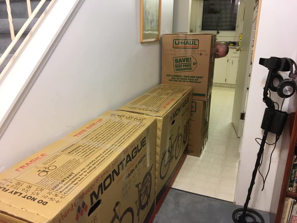 Brent and I got up at 1am today. I’ve been slowly moving my body clock up so that I’ll have an easier transition to France time when we get there. Brent had thought about maybe doing an all-nighter, but then instead slept for a few hours and got up with me at 1. We had a leisurely breakfast and did some last-minute prep and cleaning. Tannis showed up, as planned, at 4am to take us to the airport. Previously our stuff boxes have gone on the belt with other luggage at the airport, and only the bikes had to go to the oversized screening, but today they made us put everything through oversized. Not sure why. They weren’t oversized and nothing was overweight.