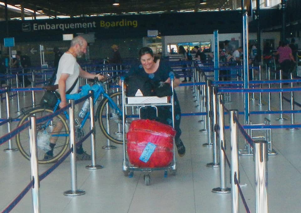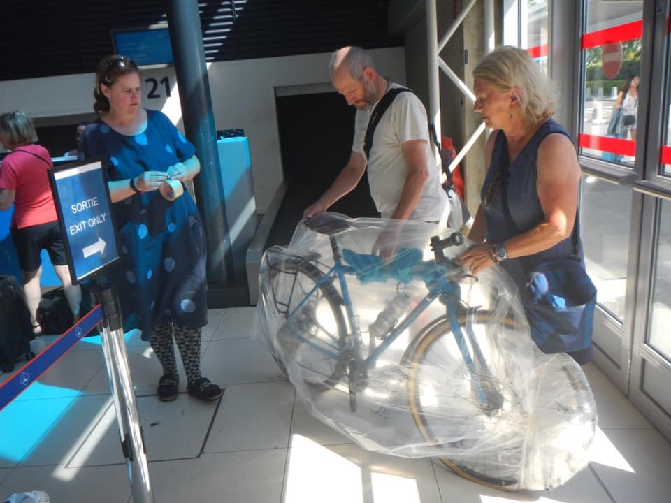 Laura’s bike goes in the bag