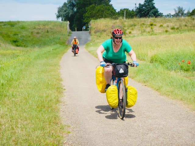 We camped near Blois last night and chose a near site on the other side to allow lots of time in the city today. I wanted to see the old town and Laura wanted to see the Magic museum. When we got to the campground it was so hot that our stuff dried in minutes of sitting in the sun. Amazing how something can seem so impossible one moment, and then be done the next. Our stuff had all been wet for dayyyys! We took a ‘Rhonda Detour’ today - Ann’s first. We missed a turn to stay on the paved trail and ended up doing a few km down a really rocky dirt trail. It seemed right at first but by the time we knew it was wrong we were so far along that we decided to take our chances on being able to correct further up rather than backtrack. Thankfully that worked out swimmingly - as soon as we reconnected with the road, we could see our trail again right away. The sun came out and we all celebrated by stripping on the trail. We keep running into a group of Vancouverites who are doing a tour and today we ran into them in Blois. We also met a group of four from China who are traveling the opposite direction from us. Tonight we have a couple from Sydney sharing our campsite. They have the kind of tent with a super long vestibule in the front. |