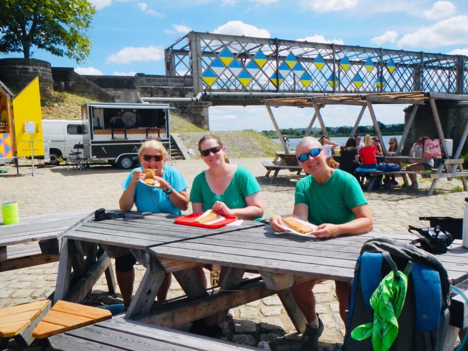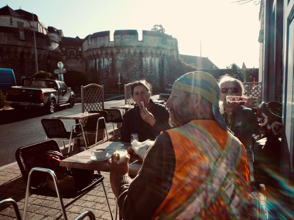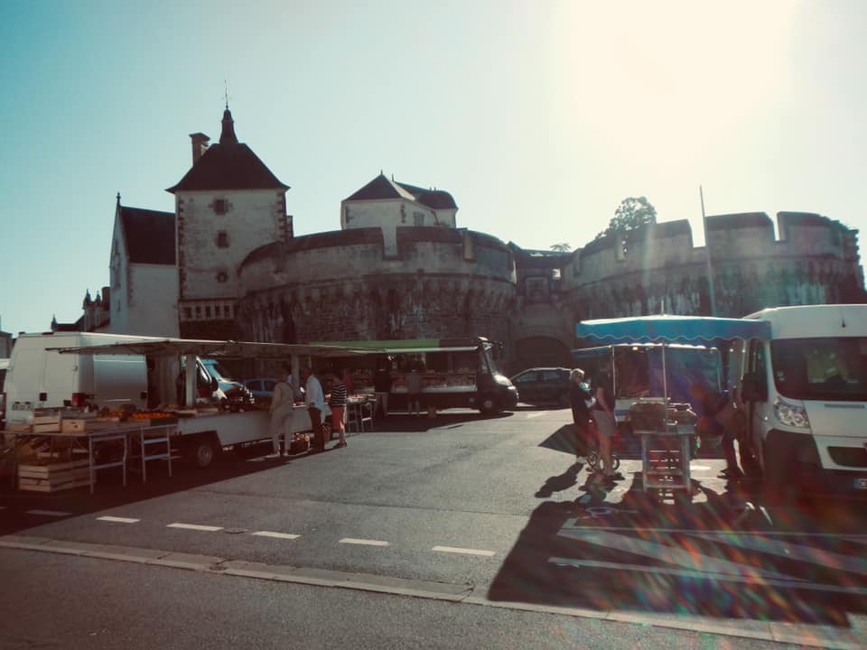 | We started off the day with the best breakfast ever - coffee shop across from the Ancenis Chateau across from a farmers market. We had an easy 32km ride to our campground and decided to spend only one night here and take a hotel tomorrow near the Nantes Gare for tomorrow. | |