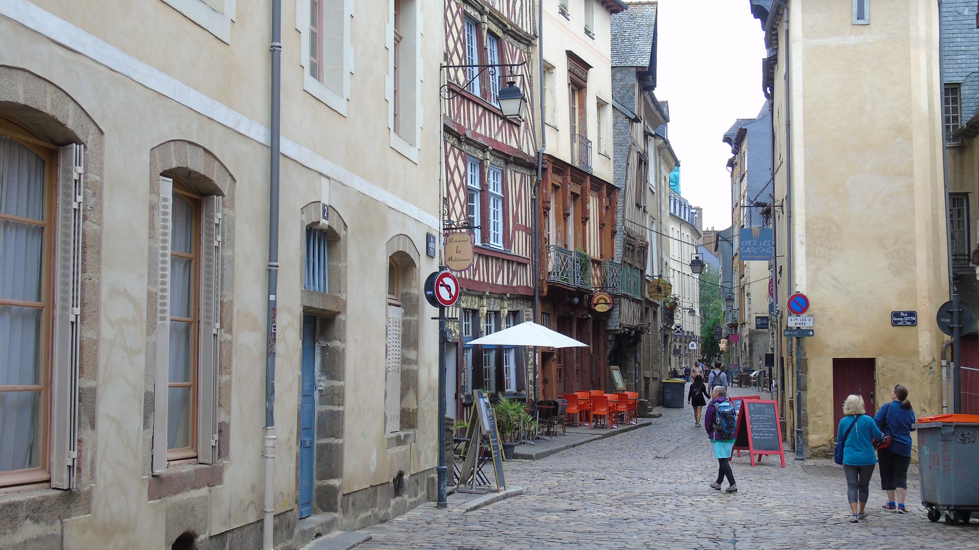 The four of us followed the Velo Tour de Rennes from the campground into downtown Rennes this morning. We had an interesting poke around the old town and had some lunch. Then Laura and Ann went one way to see more stuff in town while Brent and I went to run errands and finish the Velo route.