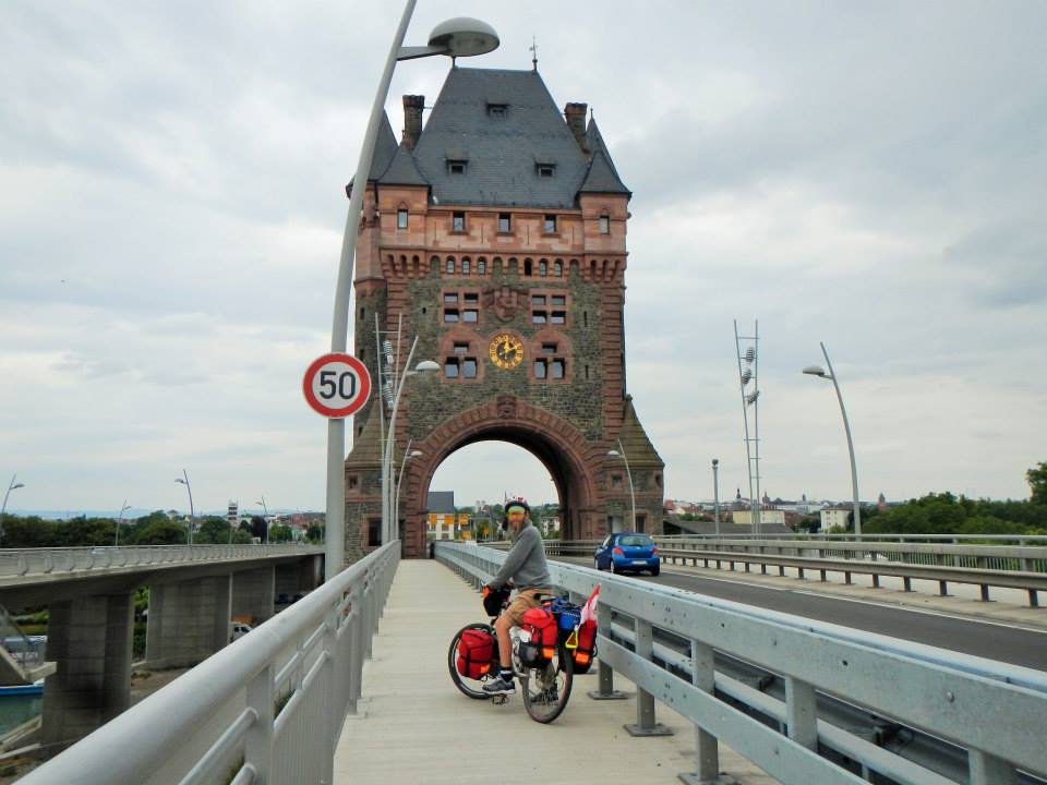 Today we rode up a 52km hill made of wind. We left Mannheim and used the ferry to cross a tributary of the Rhine about 10km north of town. It was a very small ferry - similar to the Bleriot Ferry - it's just a flat-deck that runs back and forth on a chain. The tributary was small, but the ferry moved so slowly that it took about 15 minutes to cross. We arrived just as it was leaving with a solitary cyclist. Dang. If we'd been 10 minutes earlier... but, instead we enjoyed second breakfast on the dock and waited while the ferry crossed, then the captain did... something for about 15 minutes, then crossed back over to get us. It was slow going, but still better than the long detour around to avoid the ferry. After the ferry, we continued north to Rosengarten where we crossed back over to the west side of the river at Worms. At worms, we left EV15 and used a side route a little further west, which would take us through several towns before arriving in our destination for the night. We went through Herrnsheim, Osthofen, Mettenheim and Alsheim (although Brent says he's already forgotten that one) before arriving at Guntersblum, at the top of our 52km hill for the day. The route was mostly flat, and 52km should have been easy, but that crazy relentless wind made it a pretty tough slog. |