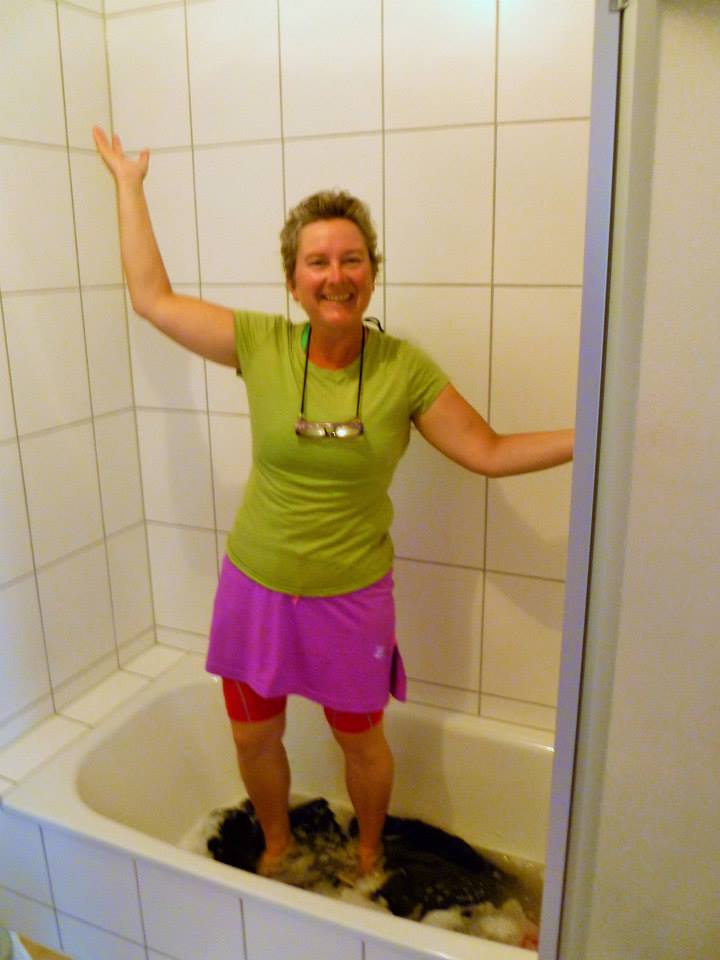 The place where we camped was very simple. It cost us €5 for the three of us to stay, and the cost is just for the use of the wash facilities. Just camping is completely free. When we got to Tuttlingen, we had the small tent area completely to ourselves - there was no one else around. Camping in Germany seems to be very much about activities and entertainment, so we thought, naively, that we may have the place to ourselves all night. After spending a few hours in town, and then returning, we discovered Tent City set up all around us, including some folks who set up their large tent practically right on top of us. Dang. I feel a bit ripped off for the €5. Turned out it was for a key which opened none of the doors except for the one that doesn't lock anyway. What was behind the door wasn't great. One toilet for the whole campsite, and a bunch of co-ed, open shower stalls (no curtains... no doors... ahem - equates roughly to "no shower for Rhonda). Damned hassle to stop in at Town Hall to return the key and get back our deposit on a key that we never needed in the first place, too!
