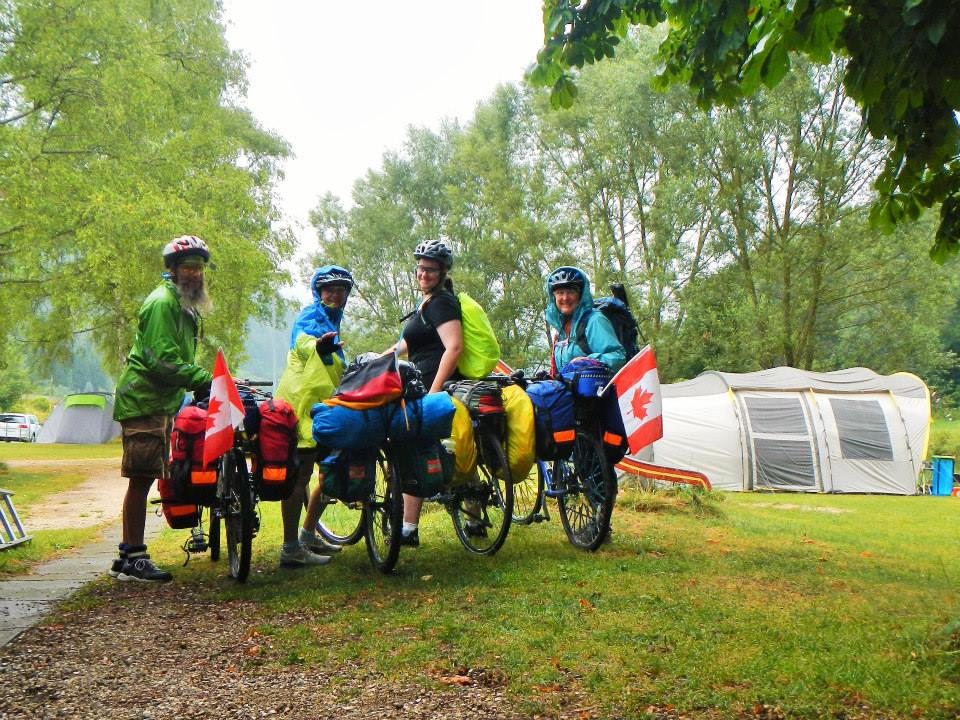 Laura saw my Facebook update about the death of the Welcome Center, so she knew about the death of our chosen meeting place, and Brent had no trouble finding her at the arrivals gate, so after the first little SNAFU, everything was easy. Laura and Brent assembled her bicycle (while I ran gopher errands), we used Metro to get to the train station downtown, Brent and I collected our bikes from the hotel, we had lunch, we rode the train to Ulm, then from Ulm to Donaueschingen, and using my dizzying navigational skills rode directly to our campground on time to check in and buy bonus yogurts and set-up beers. I'm impressed at how Laura held up through the day, considering it had started in Calgary at something like 1:30AM (MDT) on Saturday and didn't end until 10:00PM-ish (Germany time) on Sunday. |