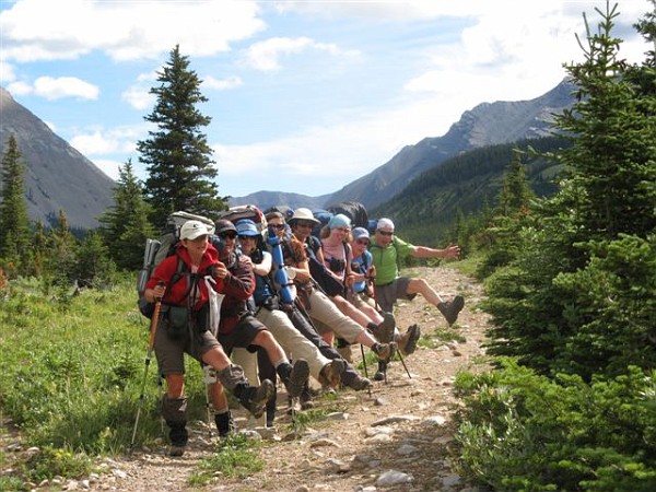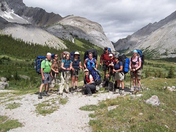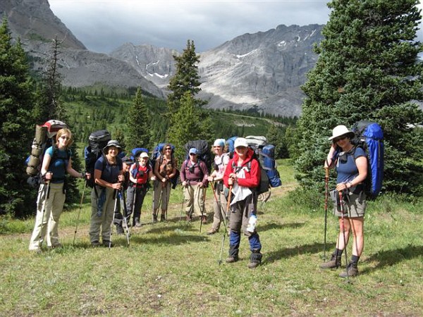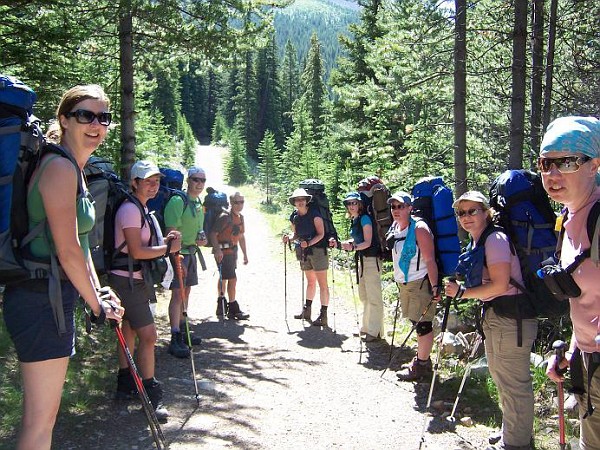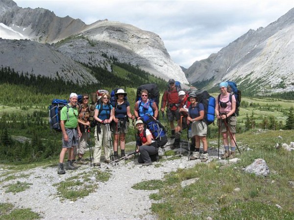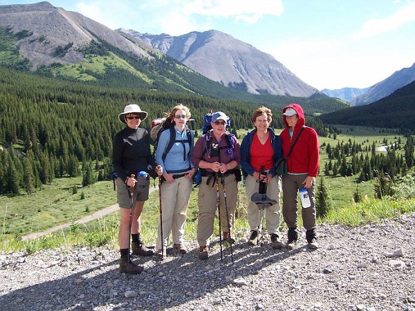 This was a fantastic trip! Great group, great destination, great day trips, and many lessons learned. Day 1: Day 2: Once past Elbow River we crossed a bunch more creeks and streams along our way. We gained and lost elevation several times and passed magnificent open spaces of wild flowers - such diversity and brillant colors! The trail finally arrived at a wide open meadow with several waterfalls & spectacular scenery. A lovely place! Some of the group went on to climb the summit of the actual pass while some stayed back to visit with part of another hiking group who were also waiting for the rest of their group. Some rocks were enjoyed, some photos taken, and oh my – (um, that’s not exactly what Judy said) – a large grizzly bear came up right over the rise where she was sitting. The bear said “oh, my” too and thankfully started walking in the other direction. Judy scrambled up over the rise shouting at me and blowing her whistle, while Rhonda was standing on the next rise shouting at both of us that there was a bear right behind us. Once all were gathered together again we watched the bear, who was also keeping his eye on us, as it continued on its way in the opposite direction. We also saw it “curb-stomping” something although we’re not exactly sure if it was successful, and dared not take any photos until we were far away. We made our way back to pick up Judy and my packs where they were left right at the spot where the bear came through. Lesson #5: Wear your whistle around your neck at all times – not on your pack which is lying on the ground nearby. Was perfect that Judy had it right on her in this situation – caught our attention when she started blowing her whistle to alert us that the bear was headed for her and us. Lesson #6: It’s good to have a whistle that doesn’t sound like a bird – and blow it in a way that doesn't sound like a bird. We agreed that might be a better way of sending an alert to the rest of the group. Lesson #7: Always keep your pack with you and your boots on at all times. You never know when you might have to leave the area in a big hurry. Also, I had visions of the curious bear walking away with my daypack, which contained keys, wallet, rocks, and other such important items. Lesson #8: I feel soooo much more comfortable in a group of 6 – with less than 20ft between us. And Judy was so pleased to have been completely finished her trip to the bushes just before the bear appeared. :) I learned also that a true friend will offer to carry your rocks back down the mountain for you. Group 2 set off later in the morning for an exploratory trip to Rae Lake. Unfortunately the trail was not easily found, so they had a little more exploration of the area than they anticipated. From the sounds of it they did eventually find Rae Lake and from all reports had an enjoyable hike and day. They saw Rae etched in the mountain – and there was also something about the wee, beady-eyed killer duck. As you can imagine, there was lively discussion around the campfire that night. Day 3: - Marg |