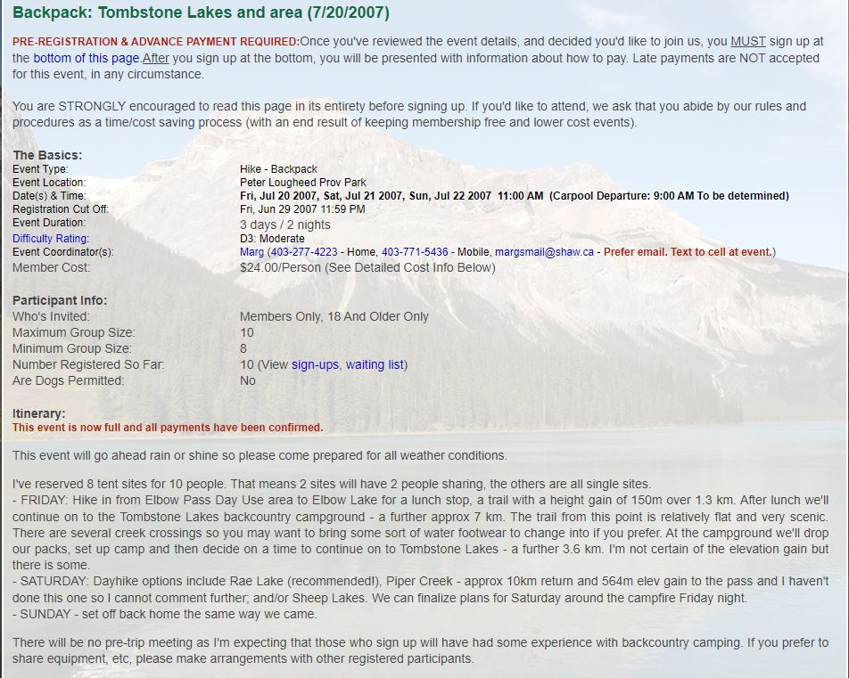 | 2007-07-15 : COC - Elk Lakes backpack |